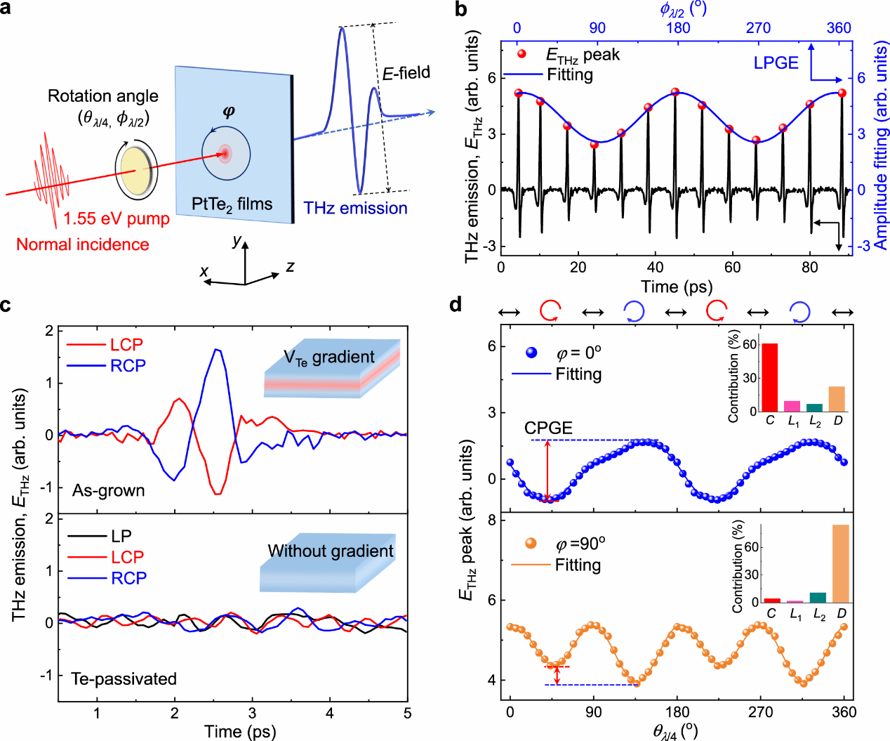Figure 1. Helicity dependent THz emission observed in symmetry-broken PtTe2 films.