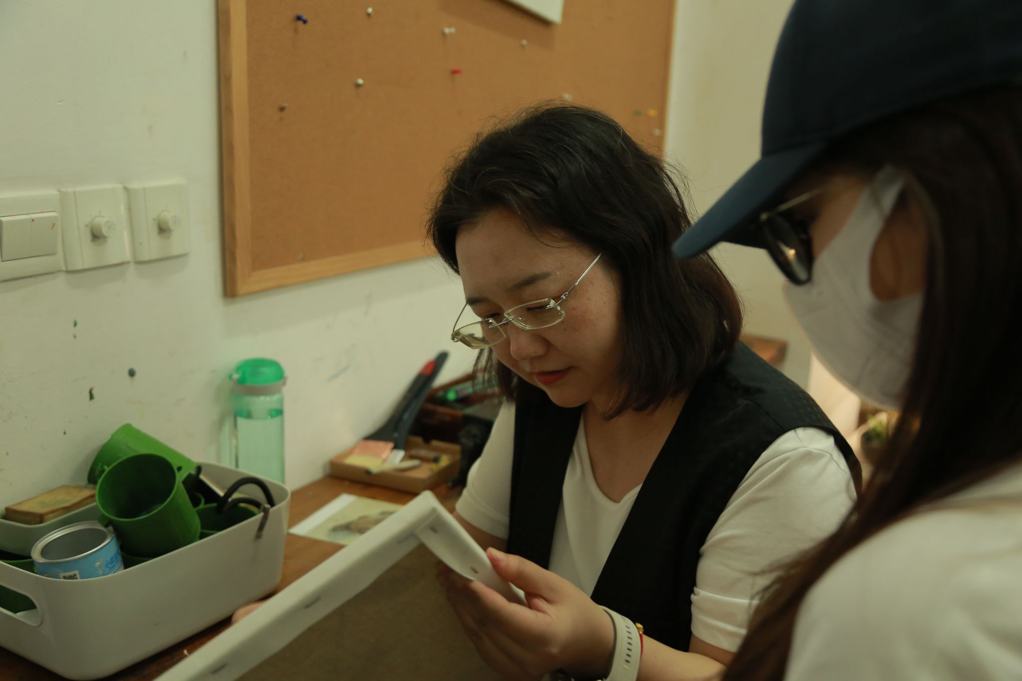 We had some interviews with course participants. One students expressed that it was an extremely novel experience for her to get access to oil paintings, let alone get down to create and polish her own work. It was her first time to use turpentine and other professional painting tools and to study and practice the skills for oil painting. Another student with solid foundation in painting said that the courses were inspiring and flexible, allowing for them to delve into the piece of work and truly experience the charm of oil painting. Many other students mentioned the immensely inspiring and beneficial course format. Regarding this, Yang Xiujuan also shared with us her thoughts in lesson designing, guiding students to copy masterpieces to learn from the best, cultivating their interest in painting and encouraging their creativity and imagination.