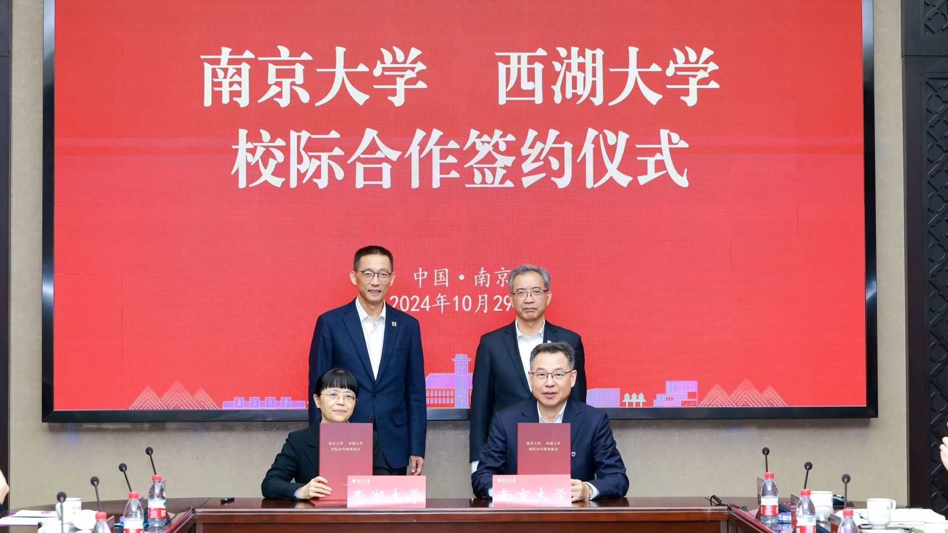 Wang Zhenlin, Vice President of NJU, and Zhu Xiaoyun, Vice President of Westlake University, signed the cooperation agreement on behalf of each institution.