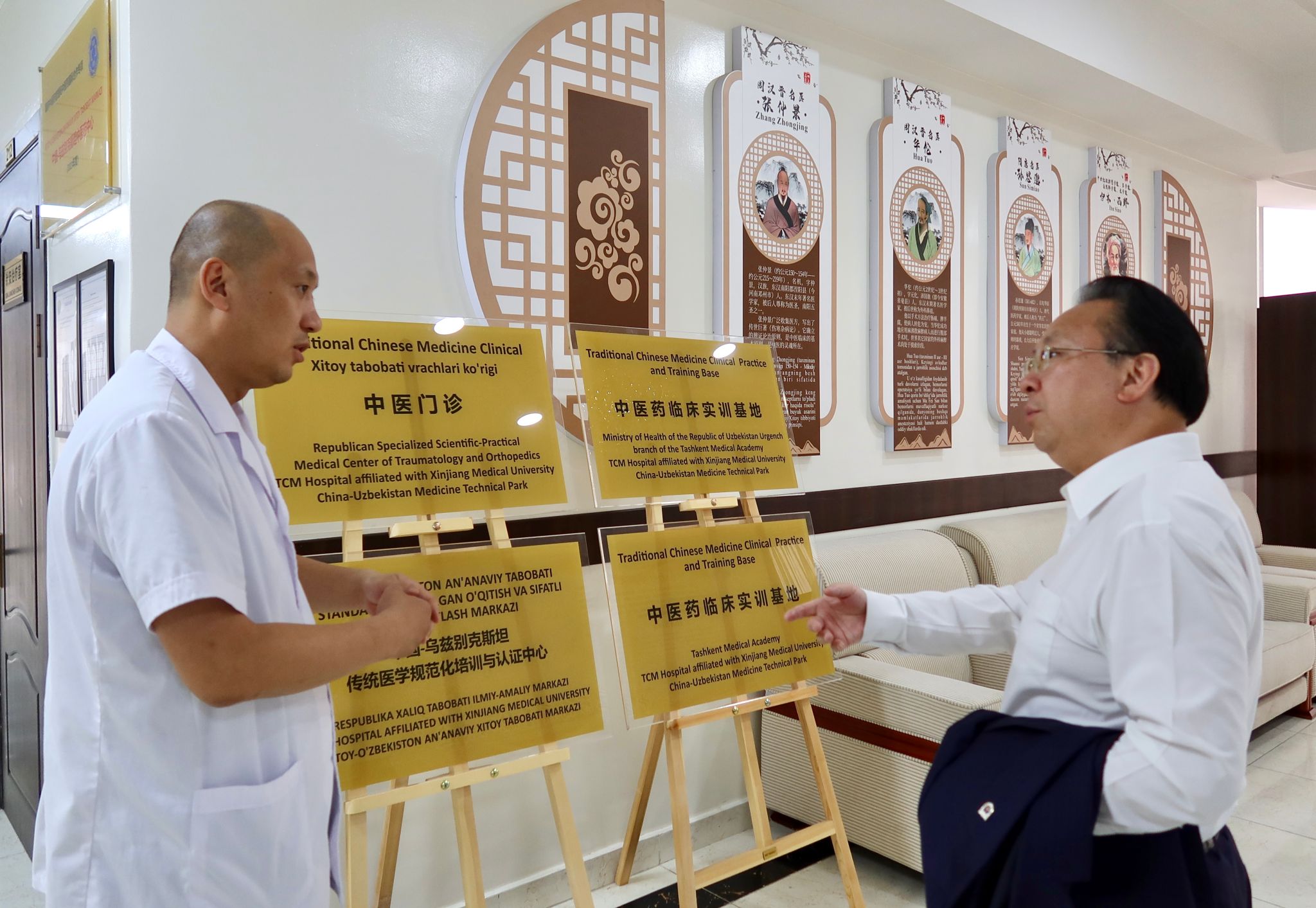In the afternoon, the delegation also visited the Central Asian Center of Drug Discovery and Development of Chiese Academy of Sciences. The delegation toured the laboratory, plantation base, and production workshop.