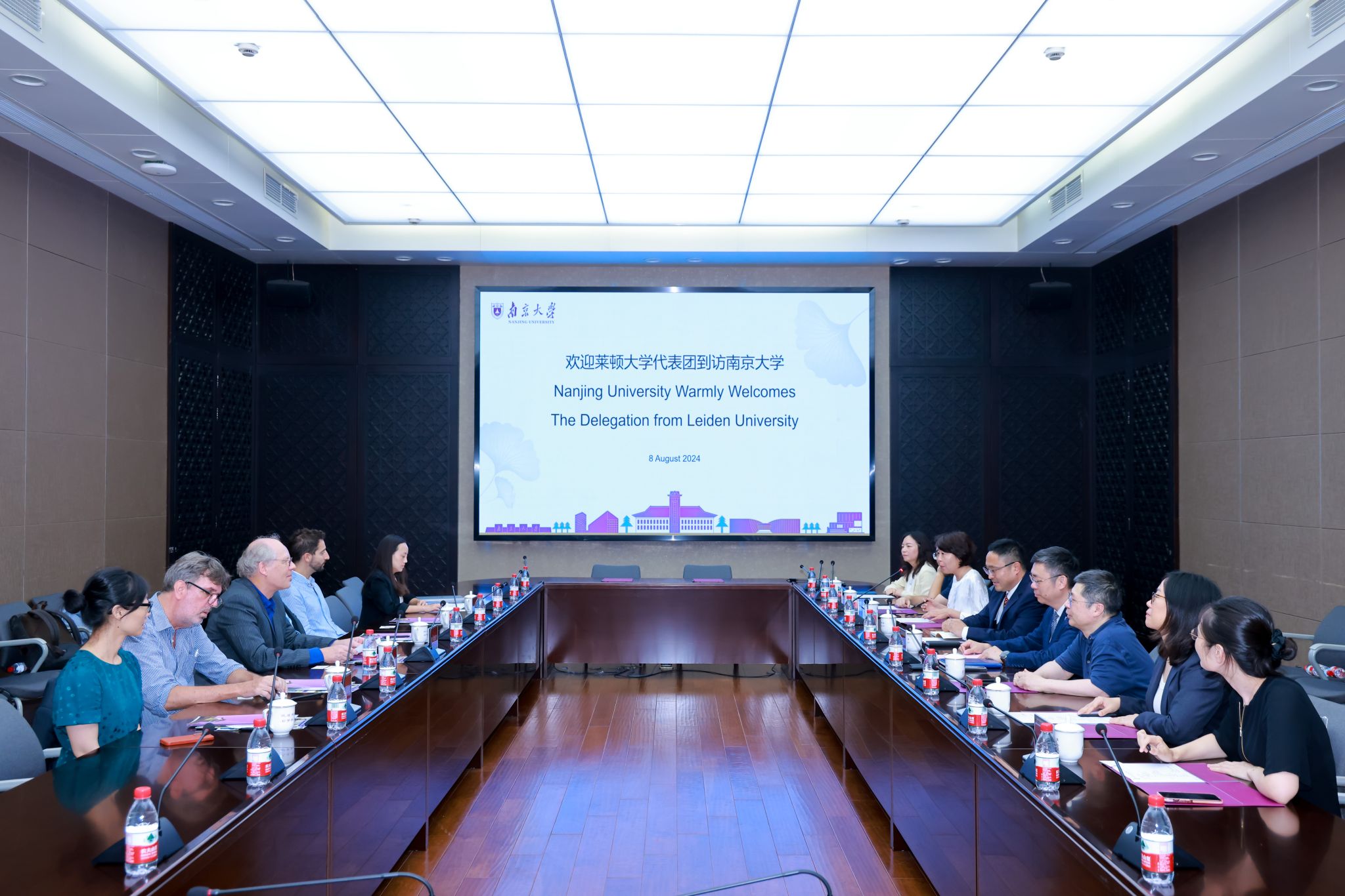 On August 8, 2024, Jasper Knoester, Vice President and Dean of the Faculty of Science of Leiden University led a delegation to visit NJU. Lu Yanqing, NJU Vice President, met with the visitors at the Xianlin Campus. The two sides discussed deepening the collaboration in various areas and signed a Memorandum of Understanding for the framework of future cooperation.