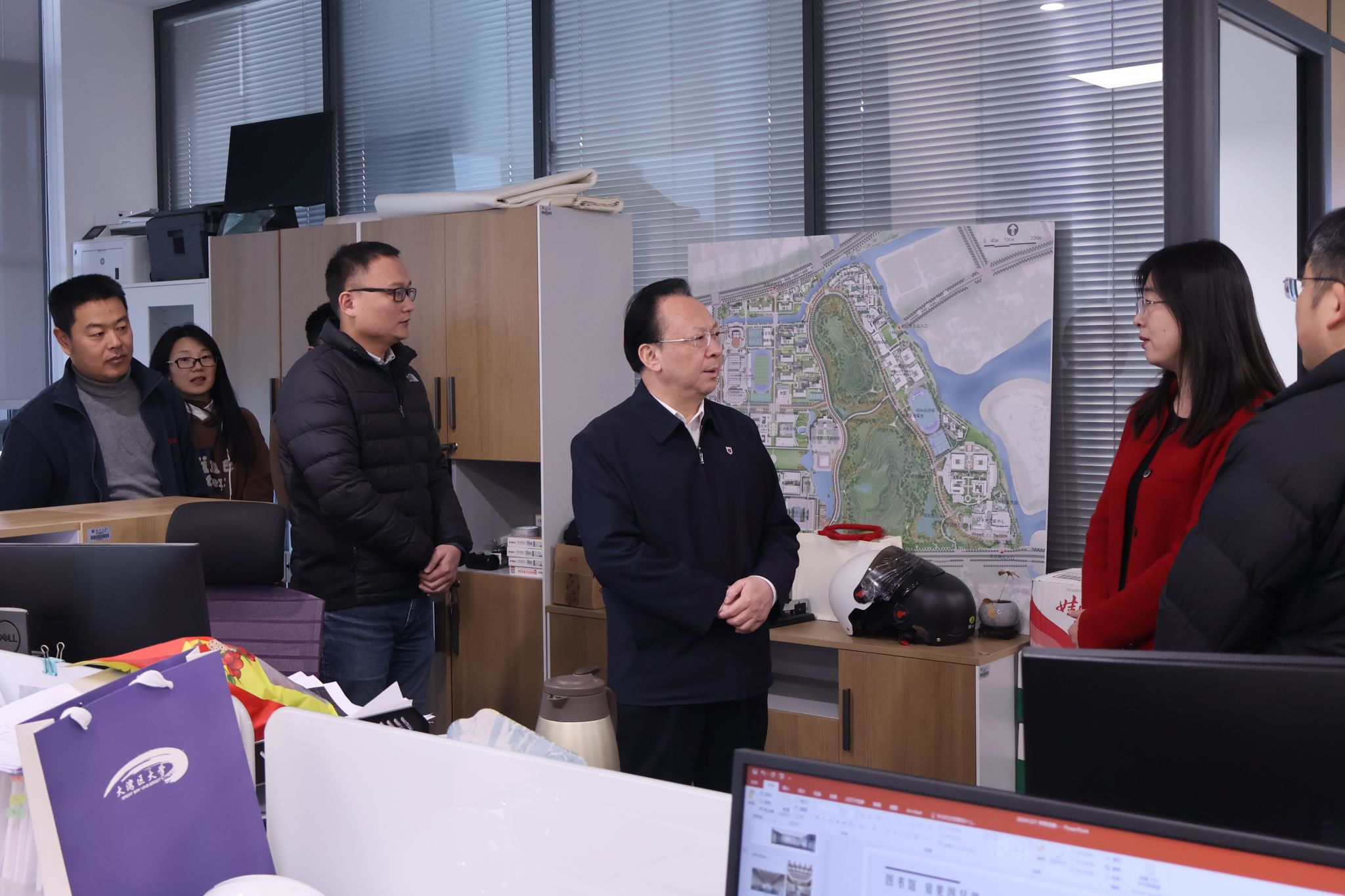 在苏州校区保卫办公室、总务办公室、基建办公室,谭铁牛充分肯定了校区东区建设与发展取得的成效,他强调,要不断完善各类安全管理制度,加强师生安全教育,共同营造一个更加安全、和谐、稳定的校园环境。
