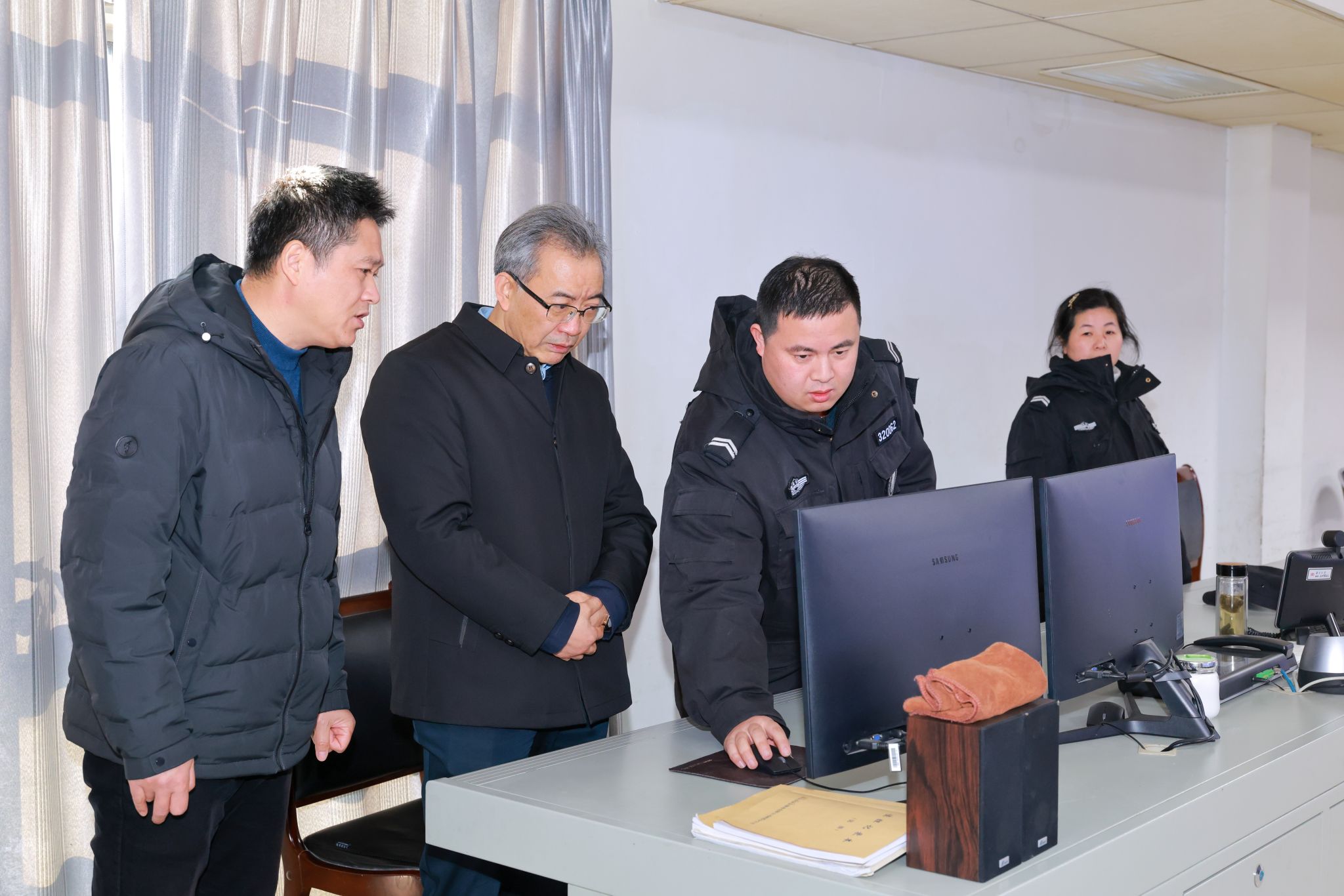 来到校医院和保卫处,谈哲敏向坚守岗位的工作人员表示衷心的感谢。他详细了解了近期师生就诊情况,嘱咐医护人员细化工作部署,确保在期末考试和假期期间能够及时为师生提供高质量的医疗健康服务。在保卫处,谈哲敏重点检查了监控系统的使用情况。他指出,要进一步加强安全管理,排查校园安全盲点,及时消除各类安全隐患,为师生员工筑牢安全防线。