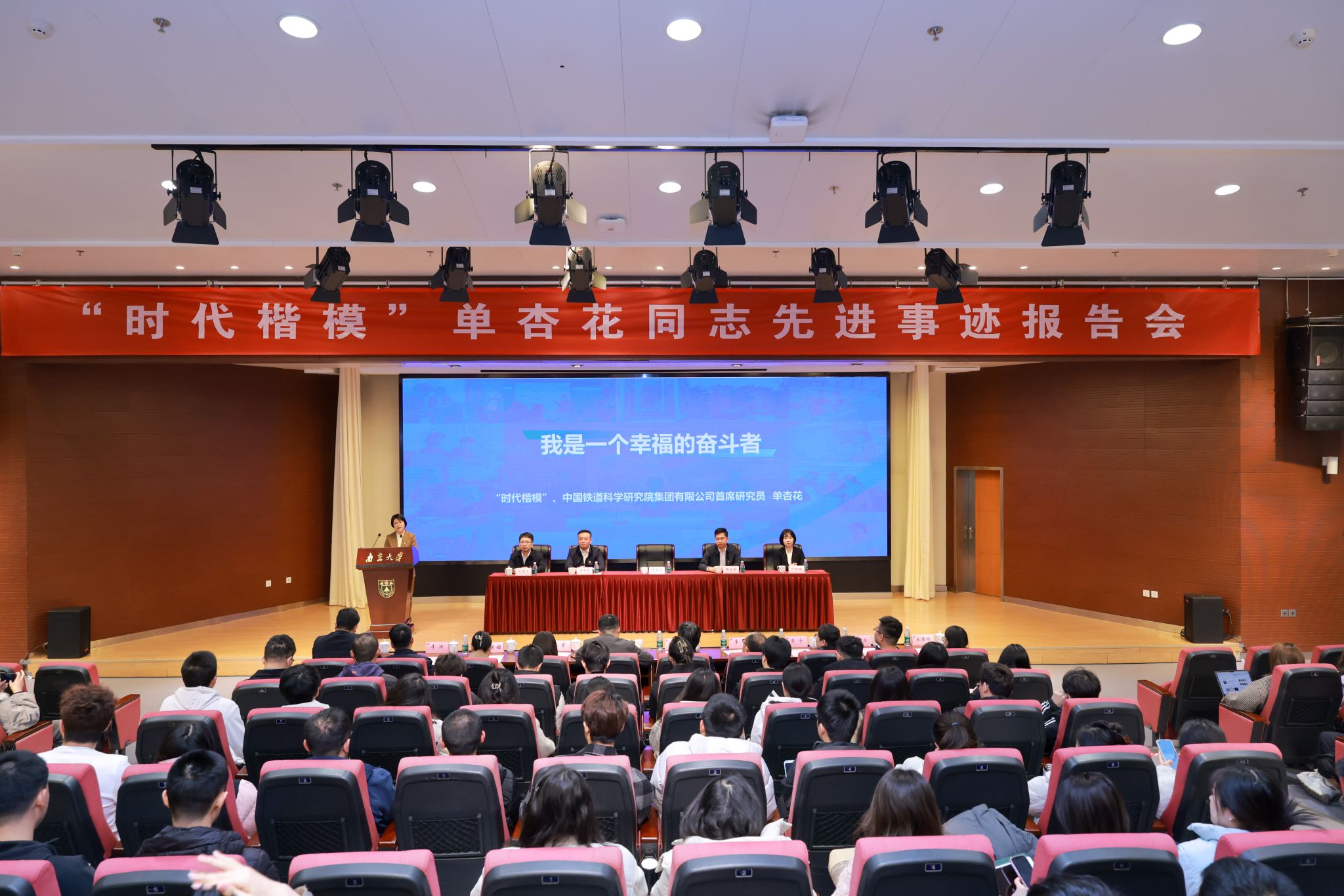 2月20日,“时代楷模”单杏花同志先进事迹报告团走进凯发k8官网,在杜厦图书馆报告厅为凯发师生讲述了新时代铁路科技工作者们开拓创新的奋进故事,吸引了300余名凯发师生前来聆听。