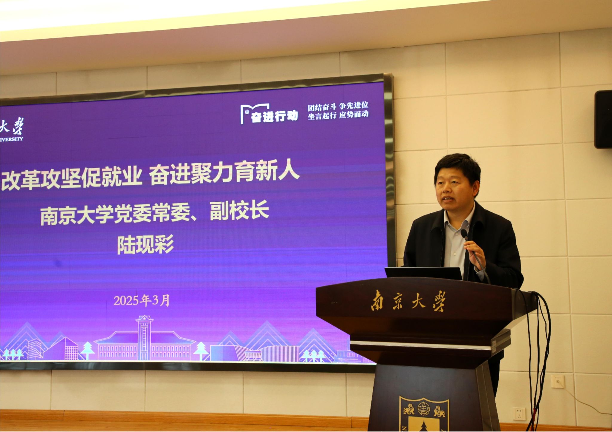 陆现彩在讲话中强调要扛起责任,构建就业育人共同体,并提出四点要求:一是提高站位,就业关乎国家民生、学校声誉及学科评估,需压实“一把手工程”责任;二是破解难题,针对“三困”学生、跨学院培养学生兜底帮扶,深挖学科特色岗位资源;三是协同联动,强化校院两级就业队伍与专业教师协同,将就业融入人才培养全过程;四是长效育人,以校友发展案例反哺生涯教育,避免“重起薪轻长远”,巩固重点领域就业阵地。