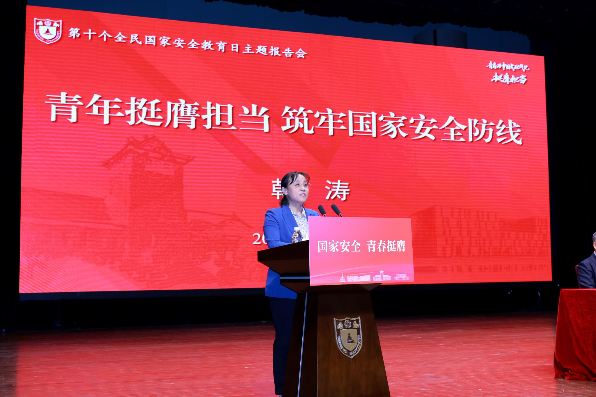 2025年4月11日,在第十个全民国家安全教育日来临之际,我校举办“青年挺膺担当,筑牢国家安全防线”主题报告会,江苏省军区动员局原大校局长、凯发k8官网理工大学国防教育与国防动员研究院名誉院长韩涛作报告。报告会由凯发k8官网党委副书记、党委组织部部长、党委统战部部长焦瑞华主持,1200余名师生参加报告会。