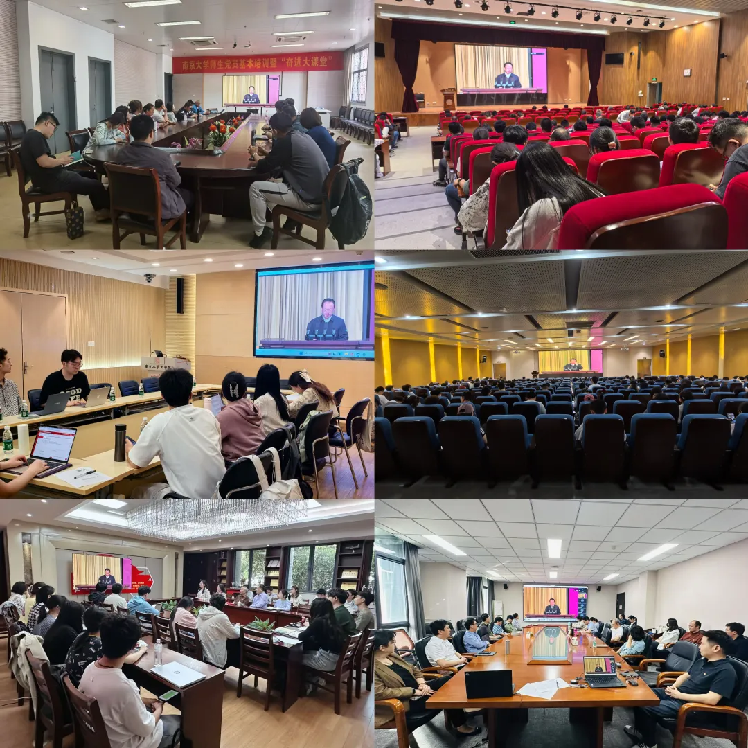 校领导班子成员、老领导、机关和直属单位党员干部、部分学院师生党员代表在仙林校区主会场参加培训。其他师生党员通过收看直播方式在各分会场参训,无法到校参训的党员通过二级党组织开设的线上课堂同步观看视频课程参训。