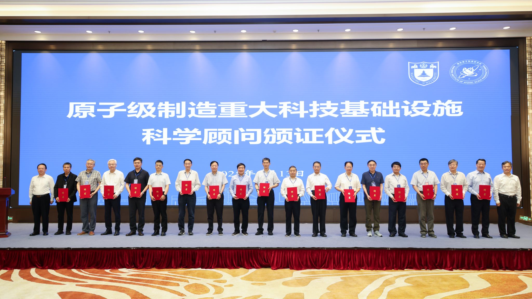 谭铁牛、杨新忠等为原子级制造重大科技基础设施科学顾问颁发证书。