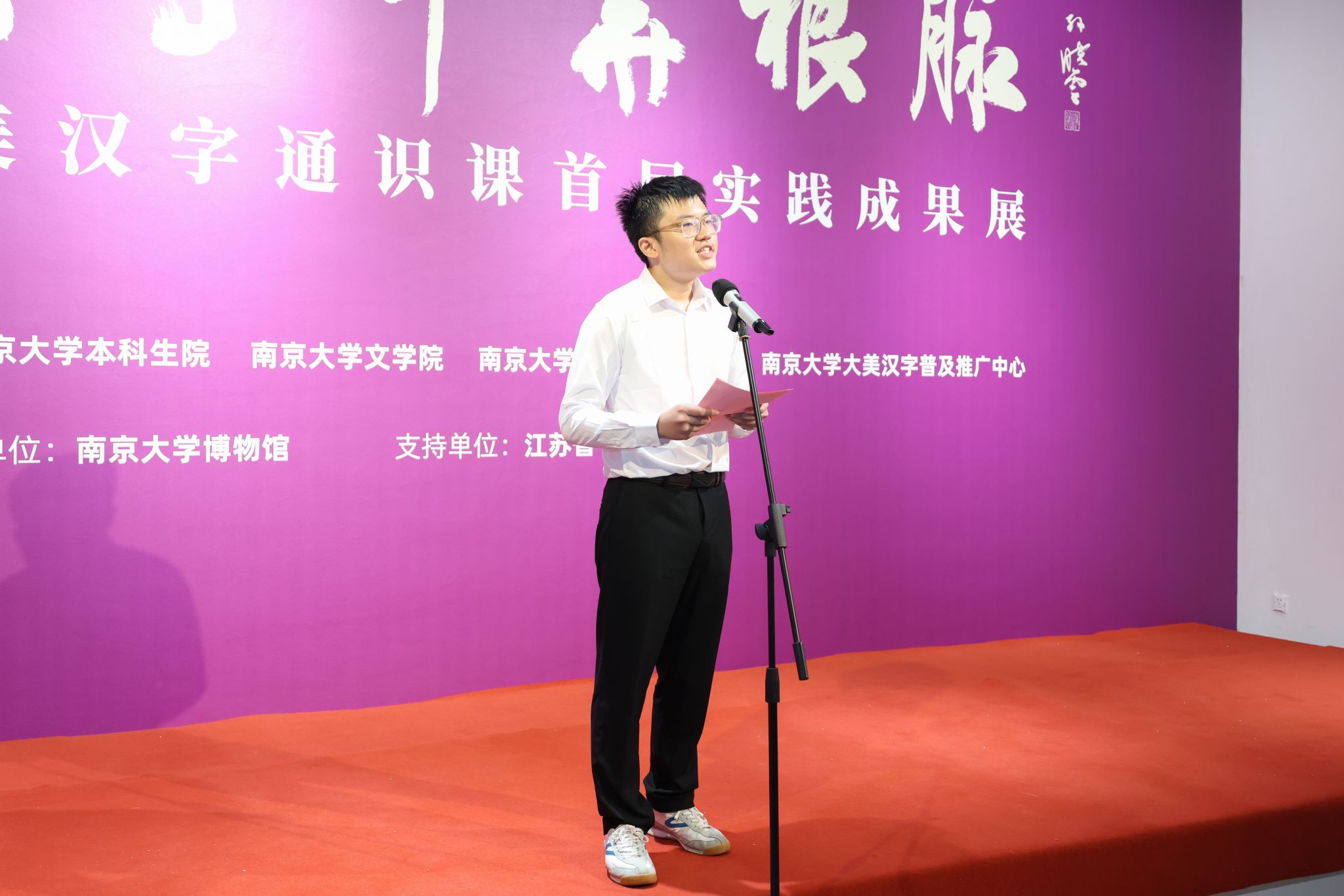 参展学生代表、我校2023级留学生张景胜是马来西亚华人。他分享了自己幼年开始学写汉字、结缘书法,以及留学凯发,学习中国历史与文化的经历。他表示,在“大美汉字”课程中领略了汉字悠久的历史,体验了文字深入传统文化的不同位面,体悟到以汉字为代表的文字在文明交流互鉴中独特的价值。