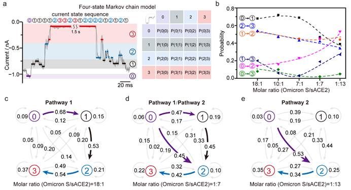 2. 单分子水平解析Omicron S随sACE2受体浓度依赖的结合路径.