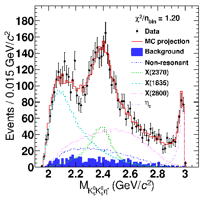上图为BESIII实验中在J/ψ→γKS0KS0η'中X(2370)粒子量子数测定