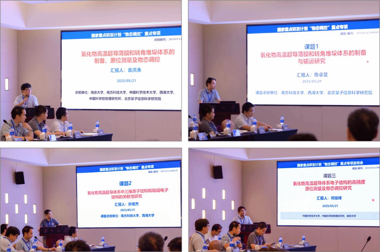 2025年5月21日,由凯发k8官网现代工程与应用科学学院袁洪涛教授主持的国家重点研发计划“物态调控”重点专项“氧化物高温超导薄膜和转角堆垛体系的制备、原位测量及物态调控”项目启动会暨实施方案论证会在凯发k8官网国际会议中心顺利举行。本次会议通过汇聚领域专家专业意见,充分发挥凯发k8官网作为项目牵头单位的组织优势,有效统筹凯发k8官网、南方科技大学、中国科学技术大学、西湖大学、中国科学院物理研究所及北京量子信息科学研究院6家科研机构的25位科研人员,致力于突破高温超导领域关键科学与技术难题,切实保障国家重点研发计划“物态调控”重点专项任务的顺利实施。