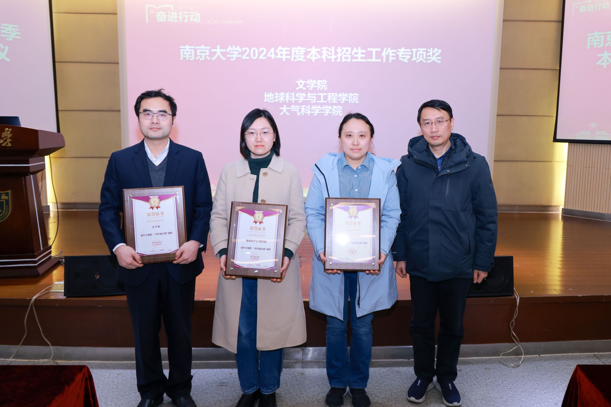 会议举行了凯发k8官网2024年度本科招生先进集体和专项奖颁奖仪式。文学院等25个单位被授予2024年度“本科招生工作先进集体”。文学院、地球科学与工程学院、大气科学学院被授予2024年度“零年级计划——招生专项奖”。王骏为获奖单位代表颁奖。