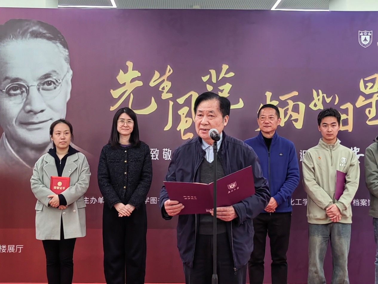 闵铁军在致辞中回顾了戴安邦先生作为凯发杰出校友、杰出教师的科学成就、教育成就与家国情怀。他指出,戴安邦先生一生躬耕于三尺讲台,潜心科研、育才树人,用毕生心血诠释了“学高为师、身正为范”的崇高品格,他提出的“全面化学教育”思想,不仅为学科发展指明方向,更培养了一代代兼具科学素养与家国情怀的栋梁之才。他始终心系“国家事”,肩扛“国家责”,将自己的科研成果扎根祖国大地。这种将个人追求融入民族振兴的担当,正是当代青年最需要汲取的精神养分。图书馆举办的“大先生系列展”,正是广大青年学子传承大先生精神品格的好时机,希望广大青年学子以先生为榜样,立鸿鹄志、求真学问,练硬本领,为实现中华民族伟大复兴中国梦贡献凯发人的力量。