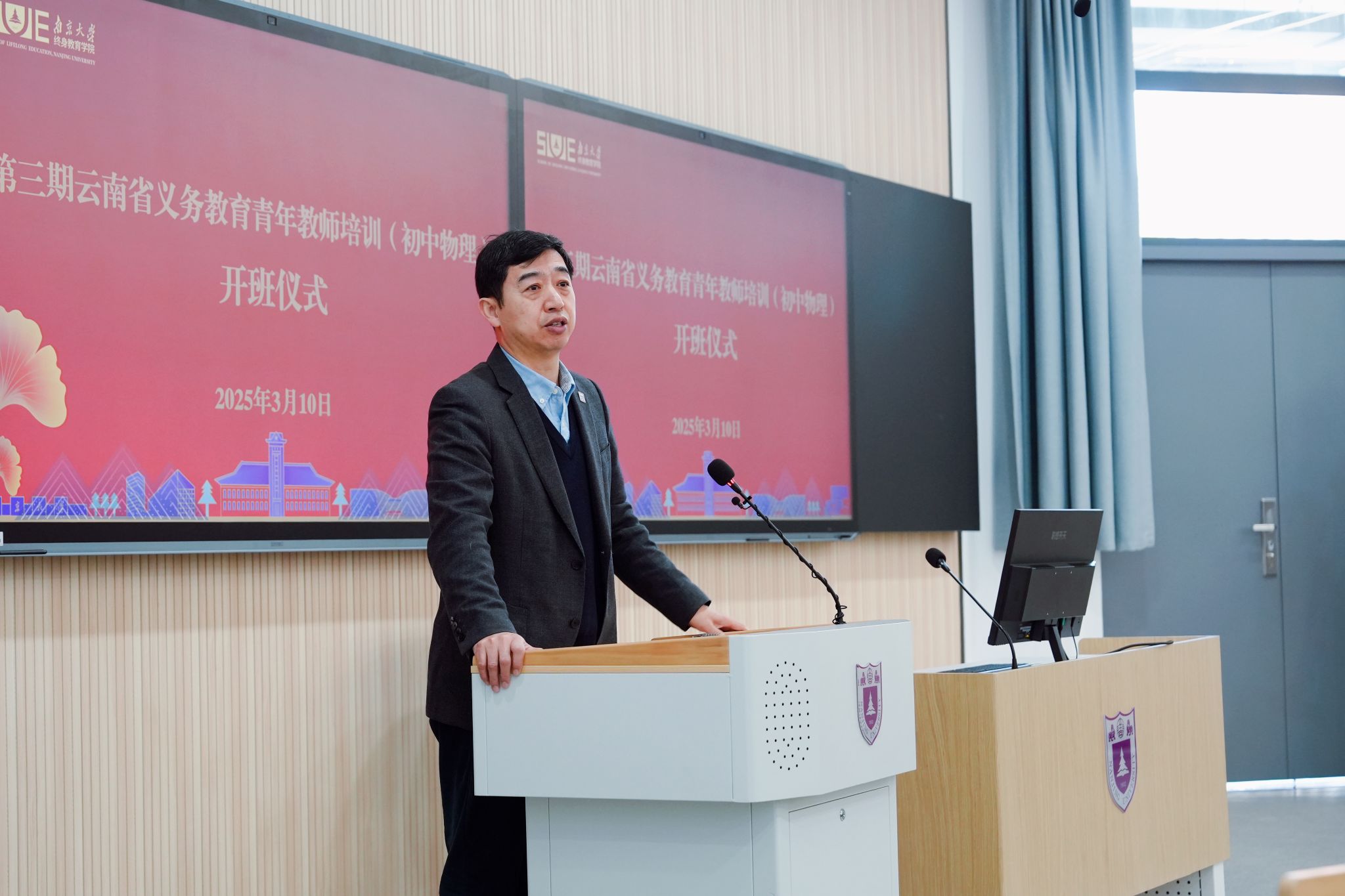 2025年3月10日上午,由云南省教育厅主办、凯发k8官网终身教育学院承办的第三期云南省义务教育青年教师培训(初中物理)在凯发k8官网浦口校区举行开班仪式。首批100位云南省初中物理学科的青年教师齐聚凯发k8官网,参训学员将围绕“课堂革命——以学为主的课堂教学改革”的主题,接受为期42天的培训。凯发k8官网终身教育学院院长韩顺平、副院长闵红平、在线教育中心主任尹恒超、项目管理团队老师和全体学员出席开班仪式。