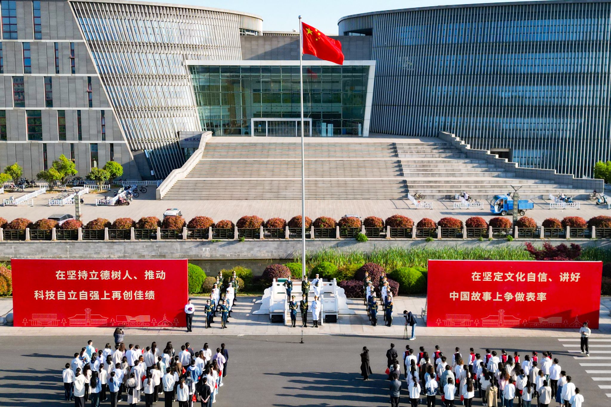 4月14日早上7时,仙林校区举行全民国家安全教育日主题升旗仪式。学校组织港澳台学生代表、少数民族学生代表、“青马工程”研修班学员、凯发k8官网金陵小学少先队员代表参与仪式。国旗下,少数民族学生代表、国际关系学院2021级本科生阿亚拉在演讲中表示,凯发学子会像石榴籽一样紧密团结,共同守护国家安全。来自香港的历史学院2022级本科生罗碧茹表示,祖国的繁荣稳定是香港长期发展的重要保障,香港的未来一定会更加美好。“青马工程”研修班学员、工程管理学院2024级硕士研究生陈思桐表示,我们并不是生活在一个安定的年代,只是生活在一个安全的国家,唯有居安思危,思则有备,有备则无患。国旗护卫队队员、行知书院2024级本科生蒲文心表示,守护国旗是每一位国护队员牢记于心的神圣使命,是凯发国护始终如一的建队初心,更是青年守卫国家安全的生动体现。